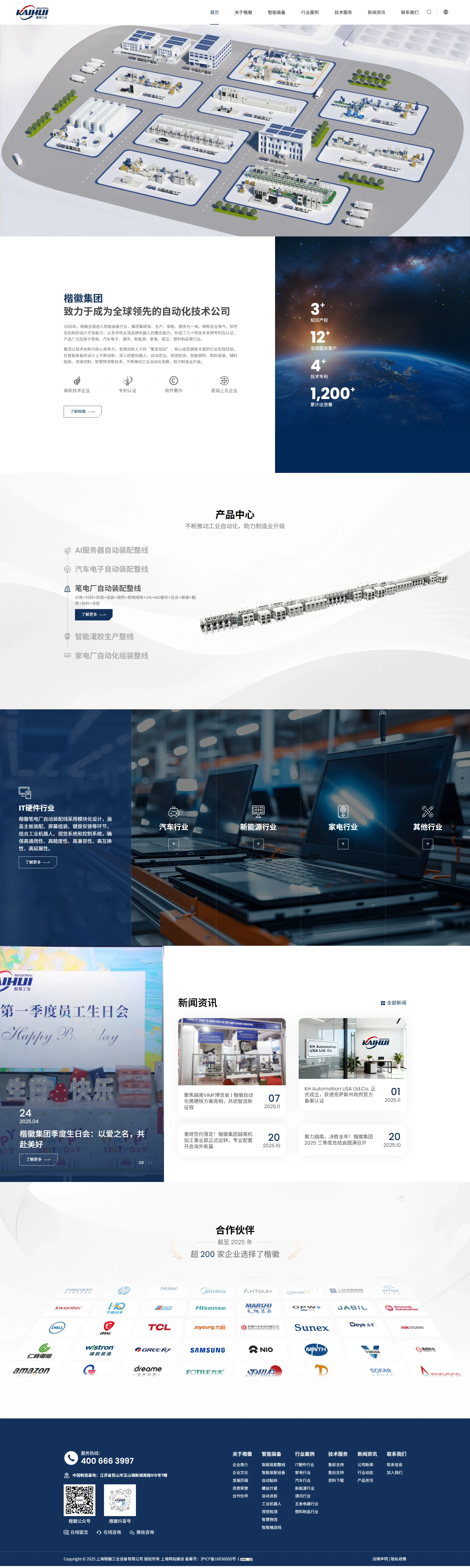2006年,楷徽全面进入智能装备行业,集团集研发、生产、销售、服务为一体,拥有自主电气、软件及机构的设计开发能力,以及市场主流品牌机器人的整合能力,形成了几十项技术发明专利及认证,产品广泛应用于笔电、汽车电子、通讯、新能源、家电、厨卫、塑料制品等行业。