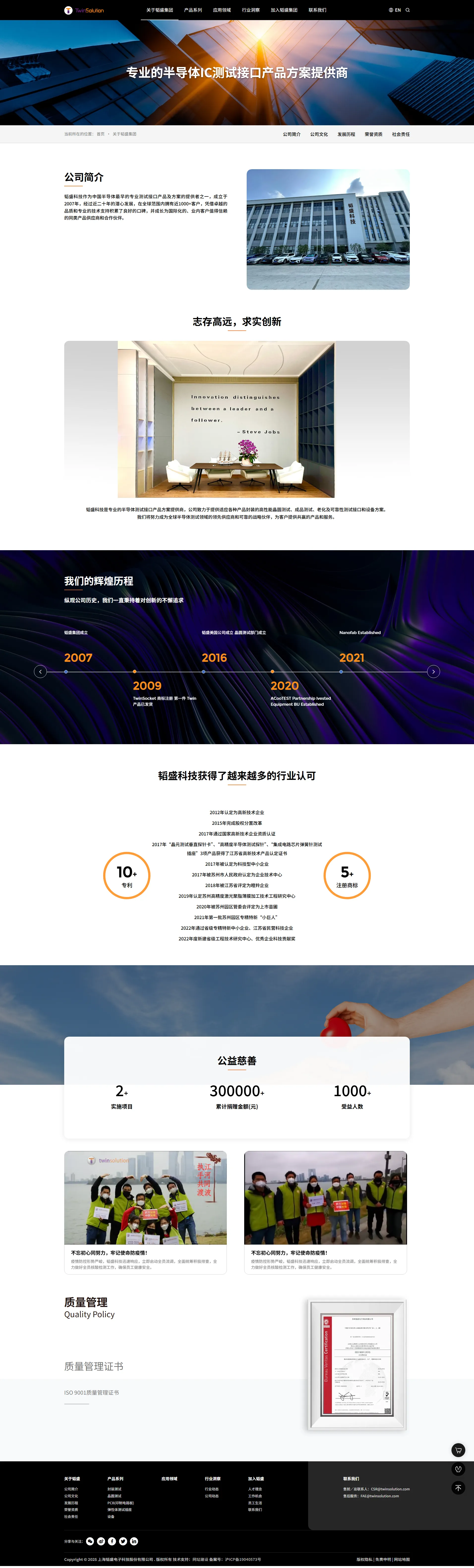 韬盛科技作为中国半导体最早的专业测试接口产品及方案的提供者之一,成立于2006年,经过近二十年的潜心发展,在全球范围内拥有近1000+客户,凭借卓越的品质和专业的技术支持积累了良好的口碑,并成长为国际化的、业内客户值得信赖的同类产品供应商和合作伙伴。